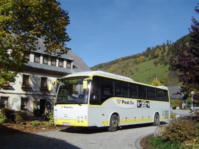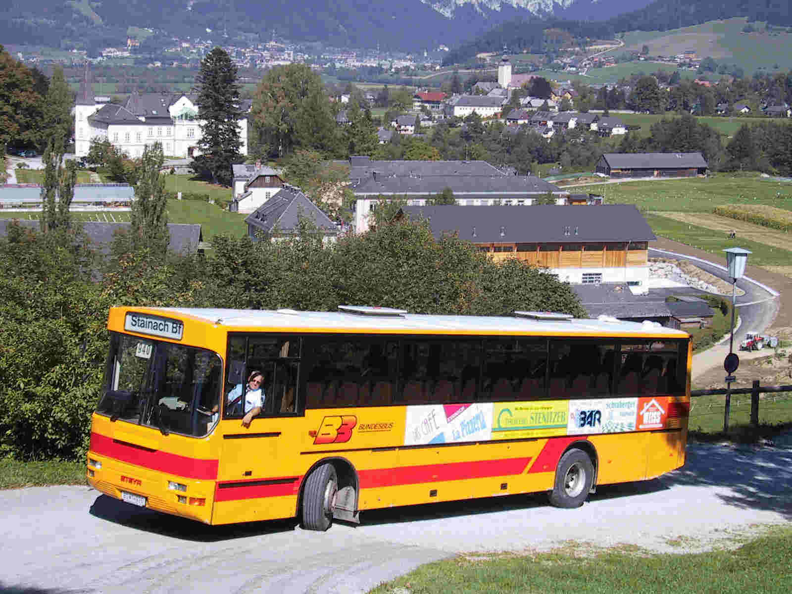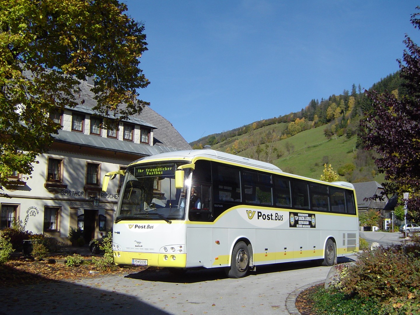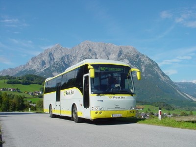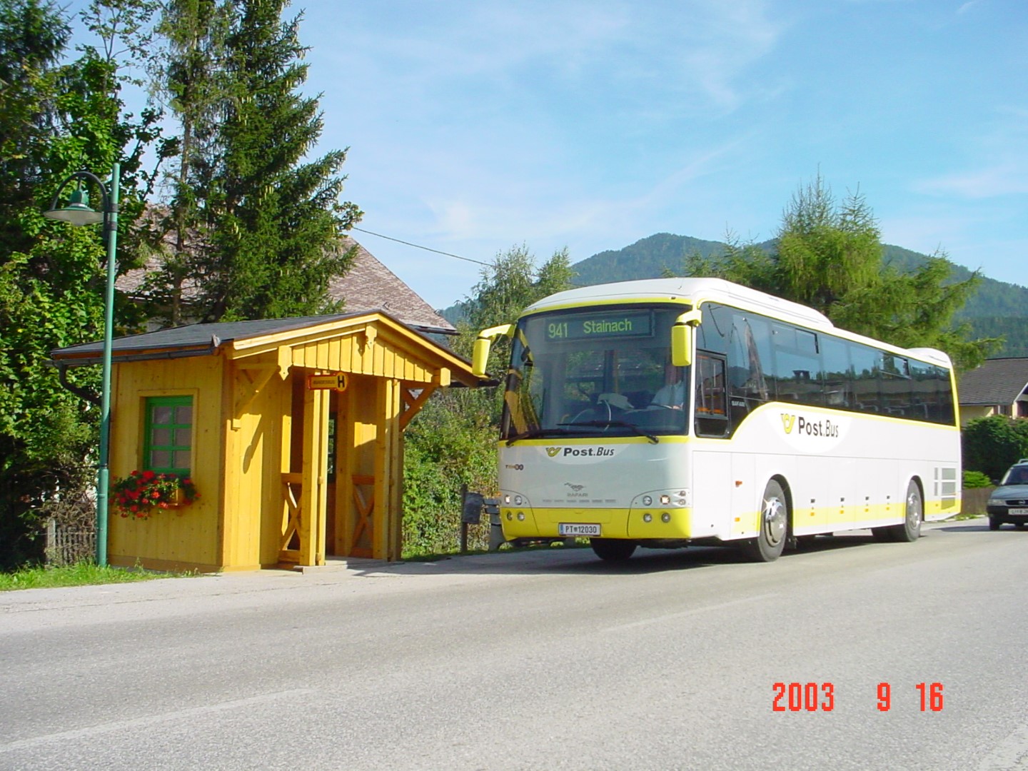PT 12030 Temsa Safari (Postbus) am 15.09.2003 um 12:30 bei der Haltestelle Irdning Abzweigung Donnersbach, unterwegs Richtung Stainach.