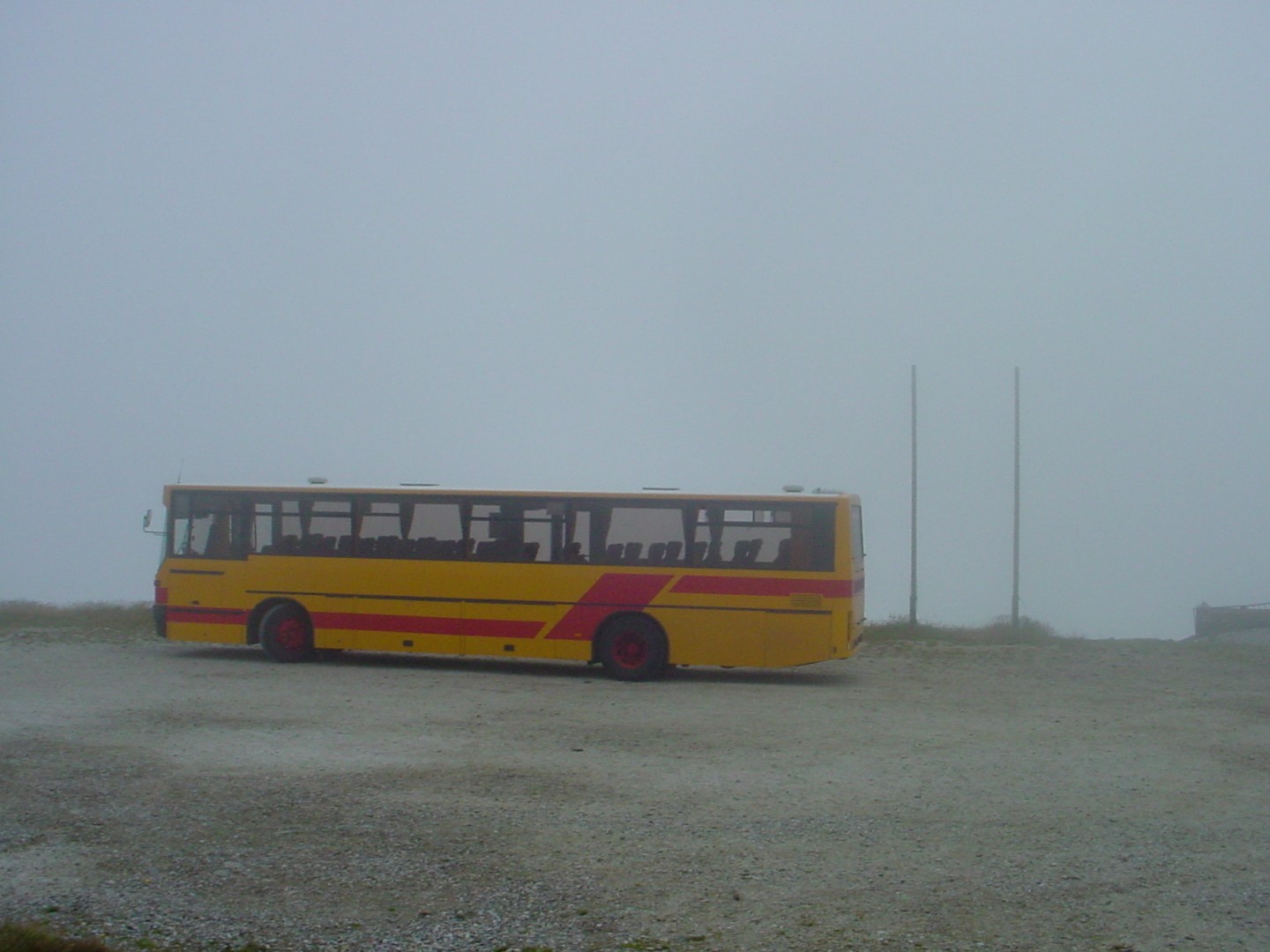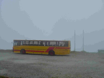 Postbus Volvo/Steyr BD 14885 auf dem Stuhleck nach einer 4 Kilometer langen Fahrt auf einer einspurigen Schotterstraße. Der Bus war gut besucht. Leider fährt dieser Bus ab dem Jahr 2004 nicht mehr.