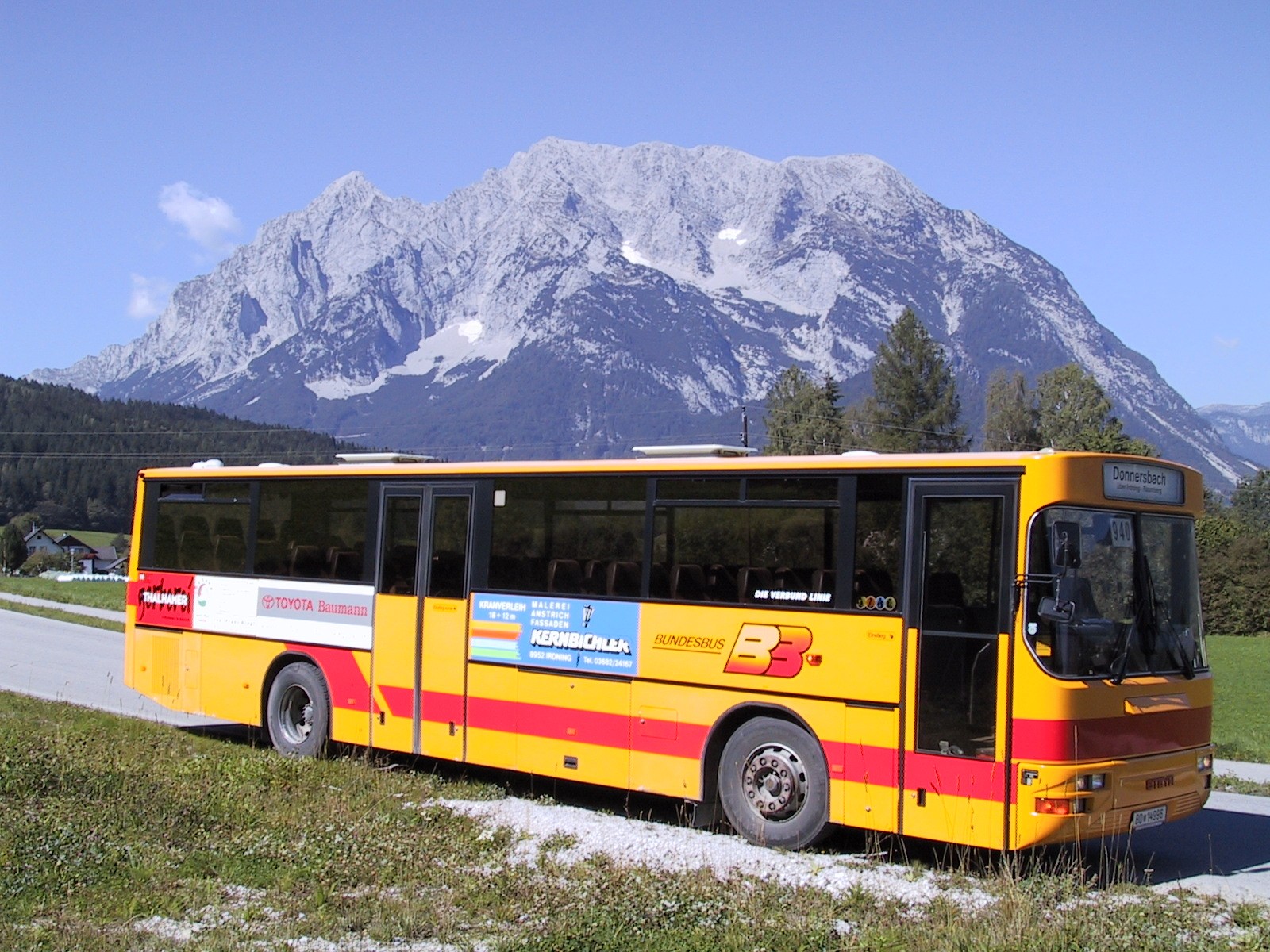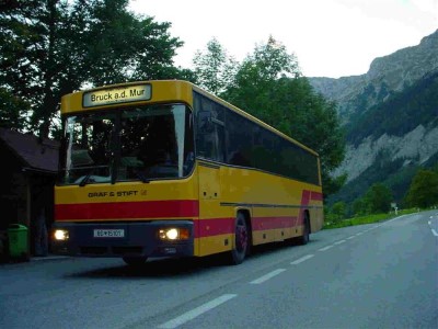BD 14996 im Sommer 2000 in Raumberg Kapelle, bei der Wendestelle des Busses. (Bus: Volvo/Steyr SL12 HUA 340)