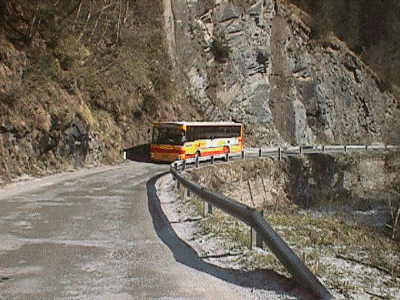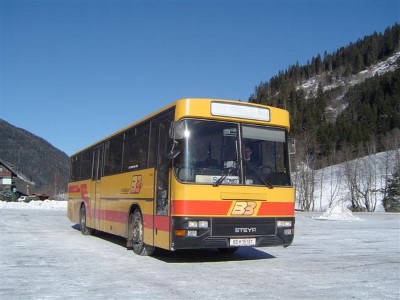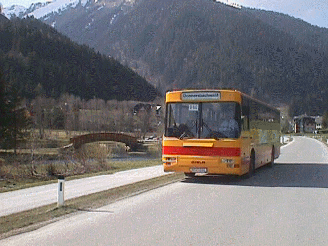 Foto aufgenommen am 22. April 2000 um 9:49 Uhr bei einer Fahrt auf die Riesneralm an einer Engestelle der B75. (Bus: Postbus Steyr/Volvo SL 12 HUA 340 // BD 14996) Weder der Bus noch die Engstelle existieren mittlerweile noch. Bus wurde verkauft, Engstelle wurde ausgebaut. Leider auflösungstechnisch nicht sehr gut.