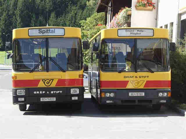 Eine Rarität (insgesamt gab es nur 2 Stück) beim Postbus, waren diese kombinierten Busse, welche sowohl für den Personentransport, als auch für den Brief- und Pakettransport genutzt wurden. Auf dem Bild zu sehen ist PT 14494 (Bustyp: Volvo/Steyr SVK 11 MUA285, Kombibus mit Ladebordwand)