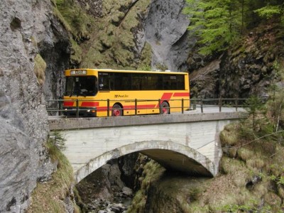 Grüße aus Vorarlberg: und zwar ist hier zu sehen Postbus BD 15169 - ein Gräf und Stift GSÜH310M10 auf der Schanerlochbrücke bei Dornbirn (Verbund-Linie 47 Dornbirn - Ebnit).