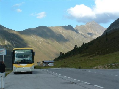 Postbus PT 15866 in Kühtai (Kurs von Innsbruck nach Kühtai), dem höchsten Ort Österreichs (2020 Meter Seehöhe).