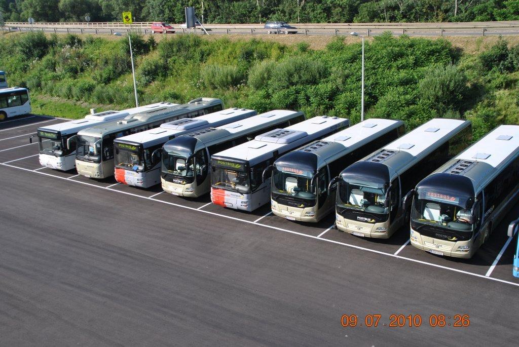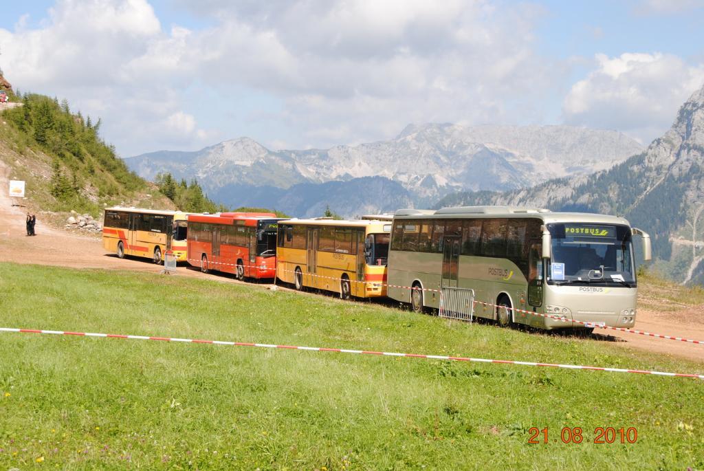 Auch beim Erzberglauf 2010 (Eisenerz) war der Postbus als Shuttlebus vertreten, wie dieses Bild zeigt, welches mir freundlicherweise von Herrn Karl St. zur Verfügung gestellt wurde. Hier zu sehen 2 Volvo/Steyr, ein Temsa Safari und ein MAN SÜ363.
