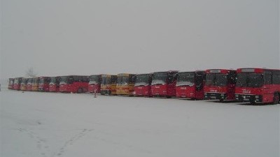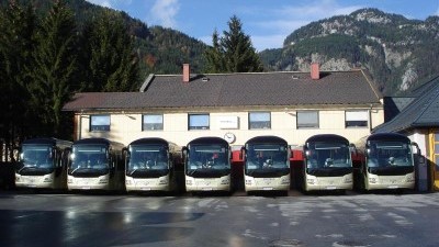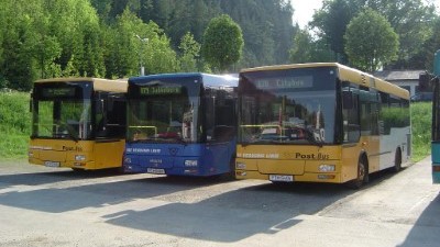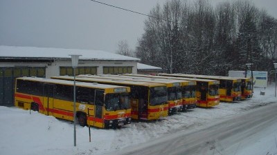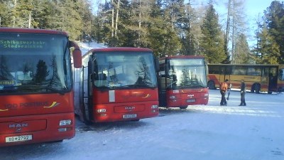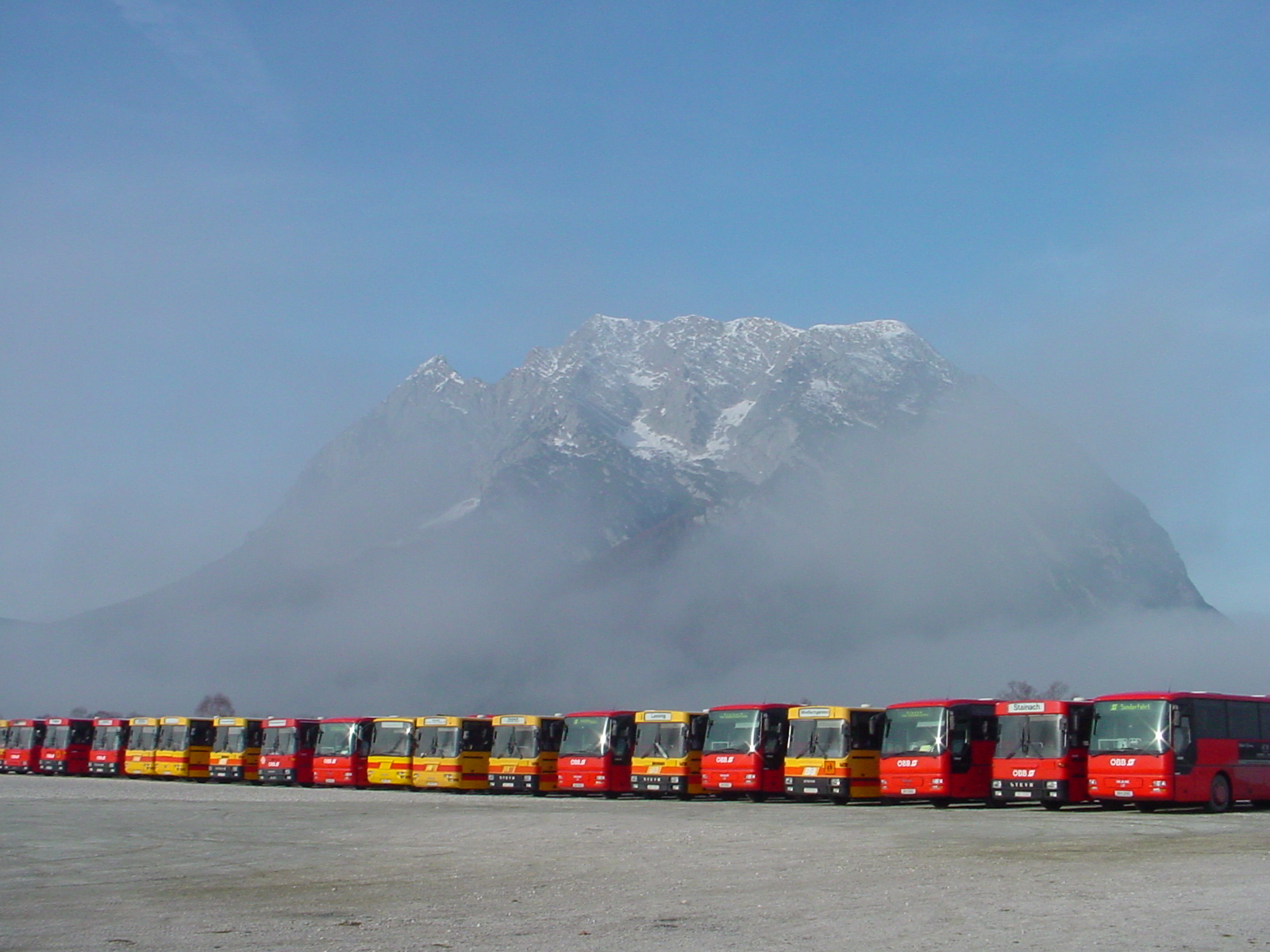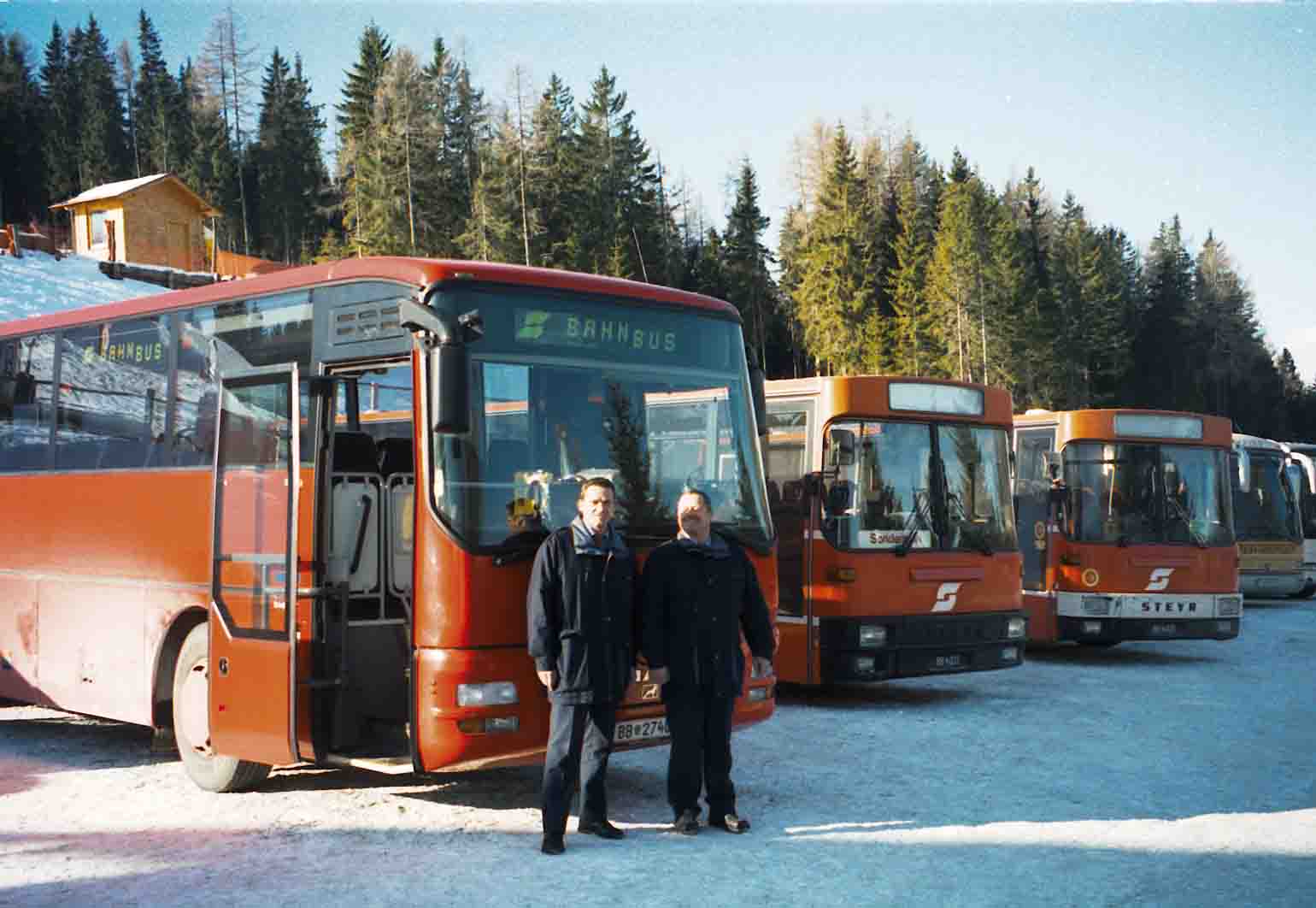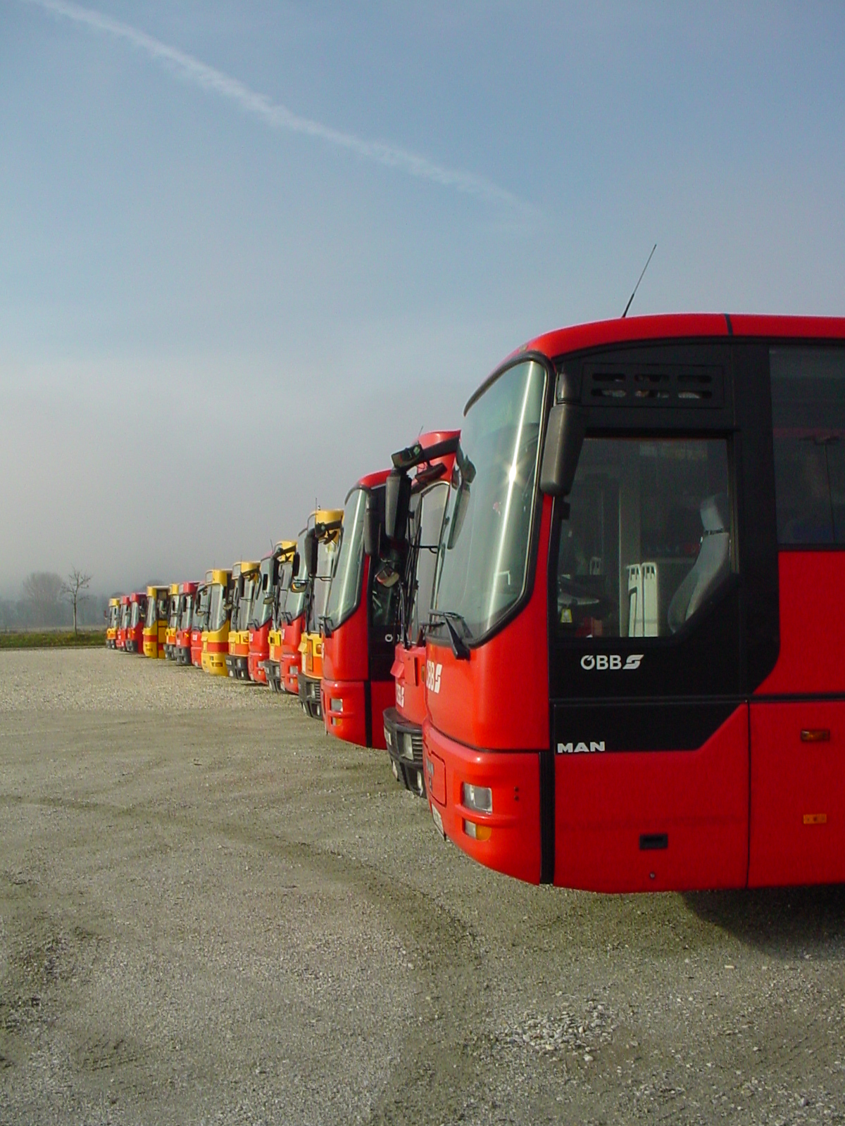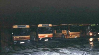 Am 23.12.2003 wurde dieses Foto bei der Bahnbus Garage Admont aufgenommen. Am Vormittag sind die Schüler in der Schulbank und auch einige Busse müssen warten, bis die Schüler wieder nach Hause befördert werden wollen.