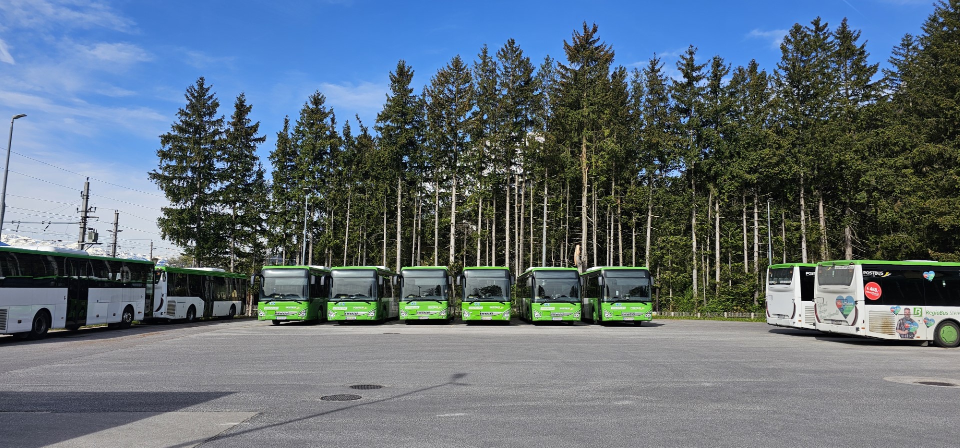 In der Verkehrsstelle Stainach stehen hier am 28.04.2024 die IVECO Crossway LE Regiobusse BD16108, BD16109, BD15247, BD15825, BD15826 und BD15579. Dies sind 12 Meter Regiobusse, BD15247 ist ein 13 Meter Regiobus.