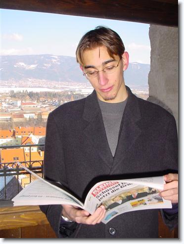 Hier zu sehen, Andreas K im T. Er studiert (in Rottenmann) hier die Kleine Zeitung. Im Hintergrund Judenburg.